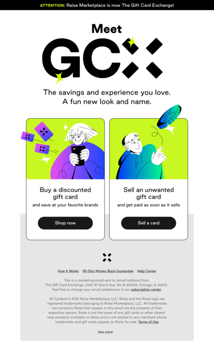 Raise Marketplace is now The Gift Card Exchange! It's still the same savings and experience but with a new fun name and look.